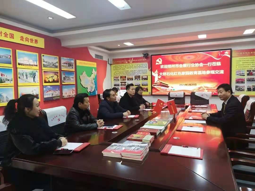 1月20日下午,鄭州天天會展服務(wù)有限公司副總經(jīng)理、鄭州會展行業(yè)協(xié)會常務(wù)副會長夏勝齊隨同鄭州會展行業(yè)協(xié)會支部委員會參觀了大橋石化紅色家園。中共鄭州會展行業(yè)協(xié)會黨支部書記李秉禹、副書記邵翠平、鄭州會展行業(yè)協(xié)會秘書長劉亞娜、鄭州會展行業(yè)協(xié)會常務(wù)副會長馬玉群等人共同參加了此次學(xué)習(xí)。河南大橋石化集團(tuán)黨委副書記尤連平、大橋石化黨委副主任申建黨百忙之中,熱情接待并全程陪同。